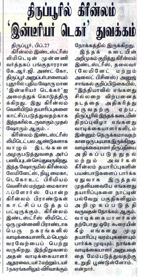 Greenlam showroom in Tirupur